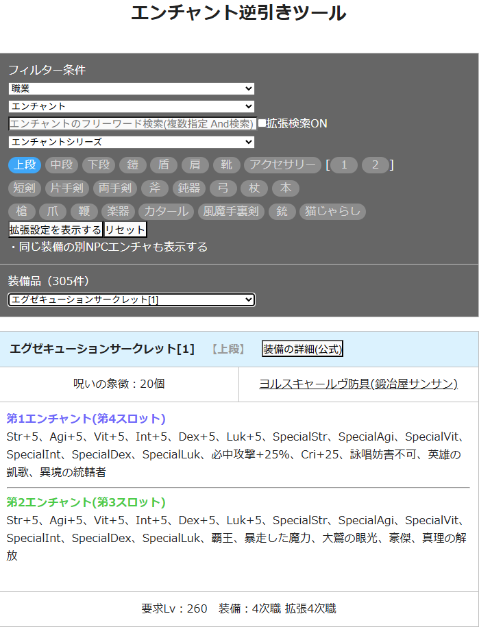 エンチャント逆引きツールにゲオルグ防具とヨルスキャールヴ防具を追加しました