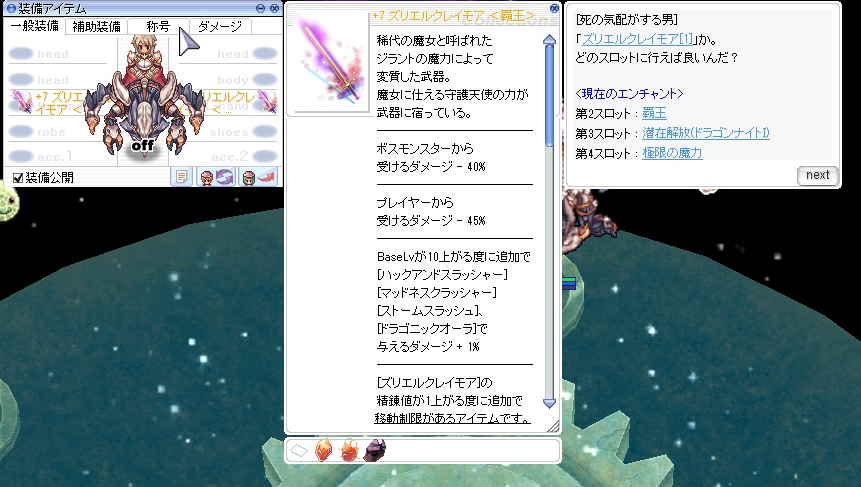 取り合えずエンチャは終わり後は精練値のみ究極までに8以上からスタートしたい自分は怖くてできないけど垢改良オリをゼニーでトレードした方が結晶使って精練するより安いのがなんかなー結晶もっと安くなってくれー