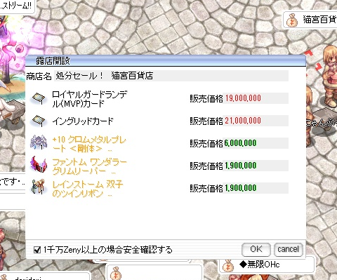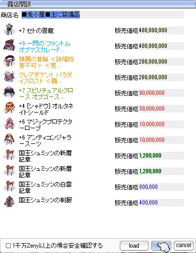 +7セトの恩寵と覇王/殺意のパラダイスロストを追加で並べました。ステ次第で必中が稼げる詠唱妨害隷属や+7スピクロもあります。B鯖南十字付近に御用の際は是非「兎小屋」156,119付近までよろしくお願いしますm(_ _)mN鯖でも+10モカダスデスト売ってます。是非m(_ _)m