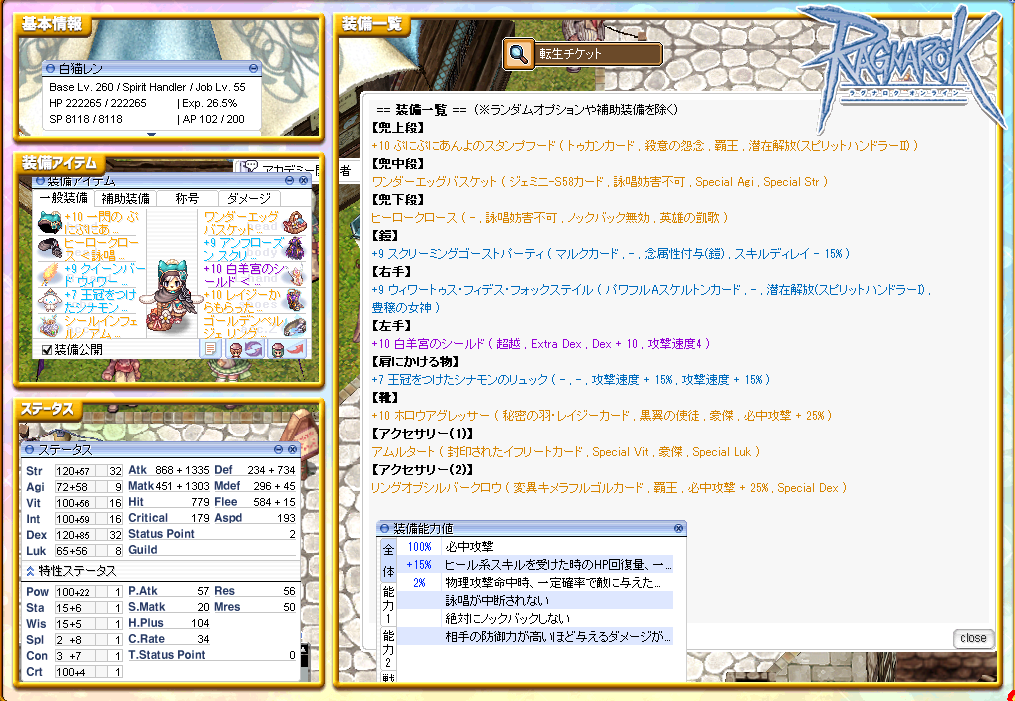 バイオロちゃんディレイ2%足りないけどまあこのくらいならいいかなシナモンだと無詠唱若干足りなかったけどシャドウで無詠唱確保、後は肩装備変更でディレイ100%↑※ペットフリオニ有り必中100%