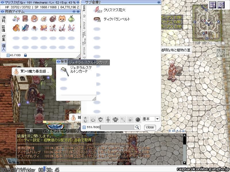 手順は 装備を預かる→ギムレーにてカードを挿す→B鯖にて装備をお返しと同時にゼニーを頂く形になります。