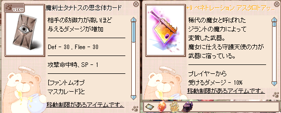 ハンガー(HP吸収)、ネイチャープロテクションLv.1(SP回復)の使い勝手がとても良い。コンボは1段目連打してたら勝手にコンボになる。装備はおおむね適当です。