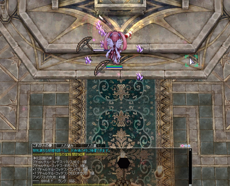 装備更新したのでお試しソロ幻影。かなり久々のソロで、もともと低層階で詰んでいたのでどうなるかと思ったら無口のマヤーまで倒せた!棚階はクリアして、2回目の生体でタイムアップ。なんならボス戦より道中がつらい。鷹師の運命か・・・。ちゃんとしたゲイル装備ほしいなぁと思いつつ、鷹師を優先。