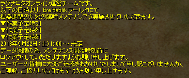 昨日はアハト様に謁見しましたが、ドラムクエ転送のカミダル山麓がクエ関係のポイントがある南ではなく北というのが謎でした。本日も釣りで現在の信用ポイントは84、もうすぐ目標の100ですね。おまけで3連▼作業予定時刻も貼っておきます。