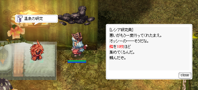 温泉からオッシーのパーツ10個集めるところ3回目に突入したところです、6時間待たせて失敗とかひどいですねこの辺。
