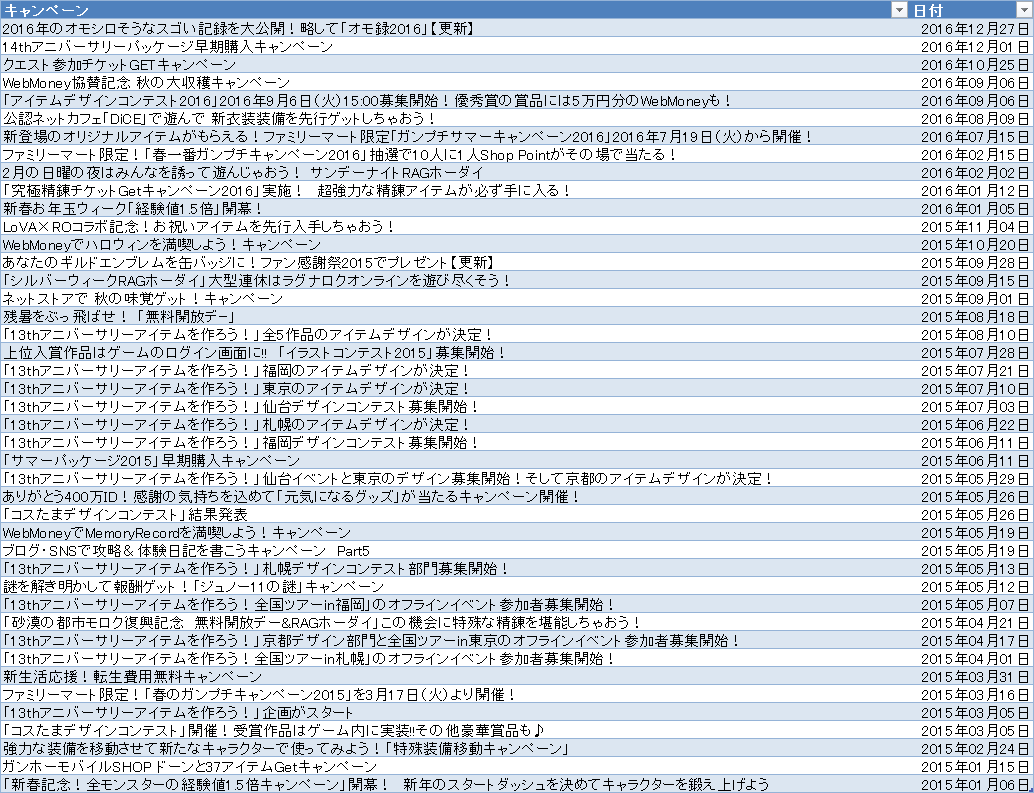まる得ウィークを除いた2015~2016のキャンペーン一覧