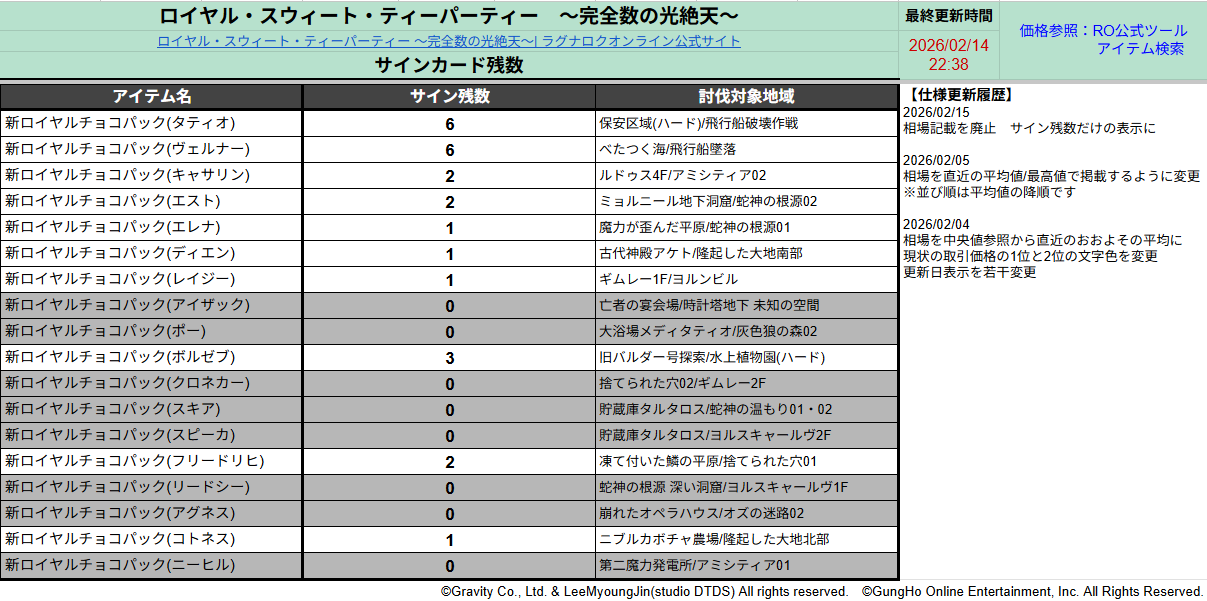 まいは様のチョコ2026相場まとめサイトにこの度最高値表示と銘柄チャートが実装されたので、私の方はサインカードの残数だけの掲載にすることにしました 今まで見てくれた方々、応援してくれた方々ありがとうございました!