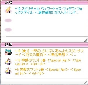 +9ぷにあん⇢+10ぷにあん(代行9回目)+9フィデス⇢+10フィデス(1回目)+8神獣マント⇢+10神獣マント(7回目)+0神獣マント⇢+9神獣マント(大きな魔力結晶240個、微力1回、究極6回目)