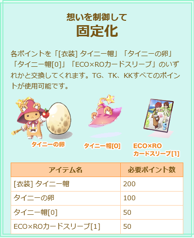 衣装タイニー帽はモンスターハウスの200ポイント交換品