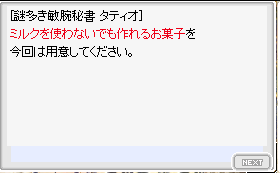 おもてなしタティオのこれ、正解が4種(ストロベリーチョコ・手作りチョコ・チョコレートパイ・手作りホワイトチョコ)あってどれでも大丈夫やね