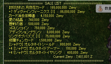 残していたABを全てCDに転職させる決心がついたので、ちょっとだけ残っていたAB用装備を露店へ。