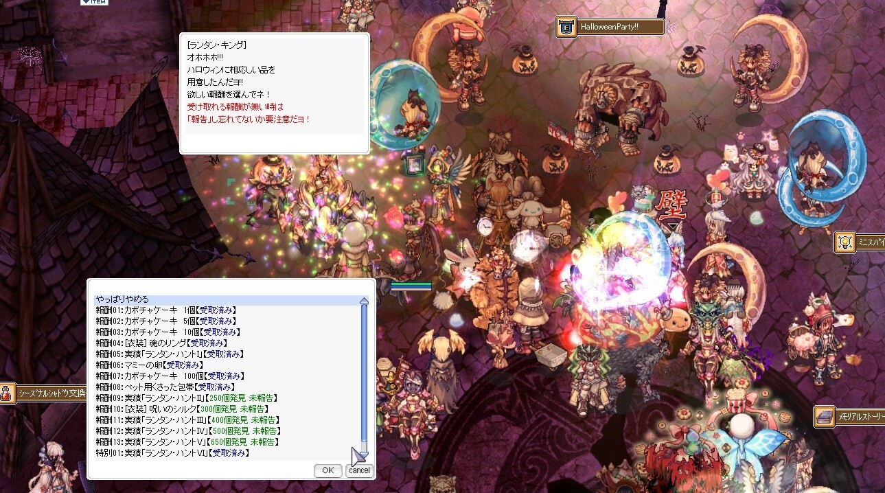 ハロウィンイベおつさまでした~!メンテ日になんとかAマミ用のランタン200達成とカボケ3000個ドカ食いできてよかった~~~😋 画像はランタンハントとスパイリダン討伐時の思い出~🎃