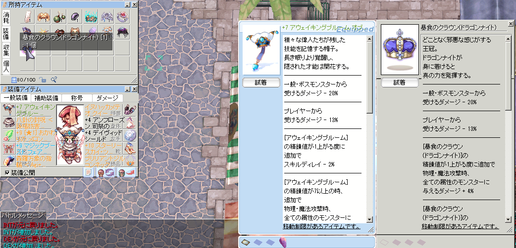 β1の2日目から開始と歴は長いが、ほぼ月額課金しかしないので装備しょぼしょぼマン。