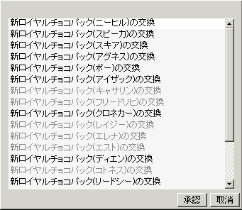 自分のメモ用兼ねて、露店前に売り切れチョコパチェック~。スクロール外の新規三人はまだ残っております。