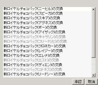 おネムなので露店出すために早めの確認。自分のメモ兼ねて売り切れチョコパック。依然リードシーより下の新規3人は残ってます。