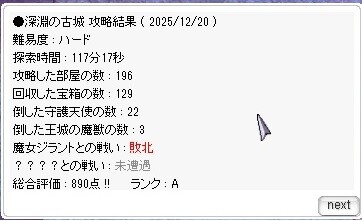 117分→91分。約26分短縮。初回はどんだけ手こずってたんだとwルッキーフラグが修正されていて、元々の担当だったレンが行けそうかも?って判明しただけでも大収穫。今回開催終わるまでにあと5回、探索に行ける予定だけど、1時間を切ることはできるのか。ワクワクする。