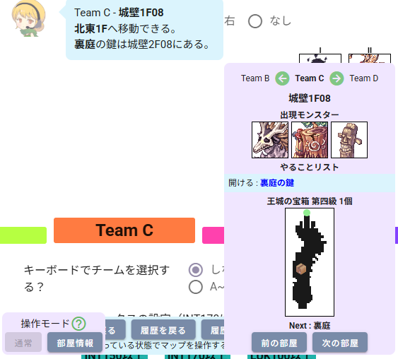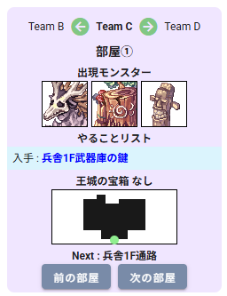 つまり、作成したルートに従うだけなら右下の小窓だけ見て順次「次の部屋」をポチるだけで良い