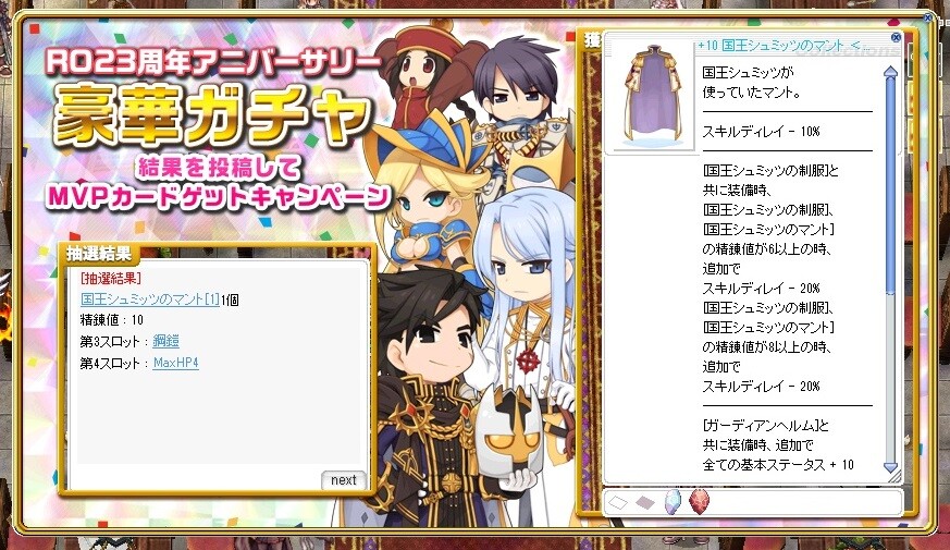 これ豪華ガチャです・・・(ヘルメットの中に入っている装備)シュミッツ仮面選んだからこれになったのかな
