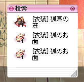 衣装狐のお面が欲しいとずっと思ってるけど、あれは昔のイベント配布だったらしくて入手手段がないのよねぇ……