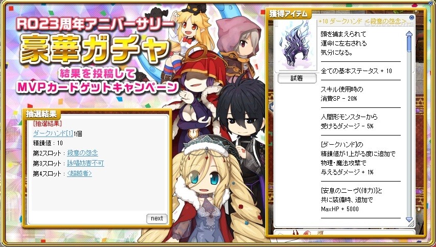 アニバ38日目マーチ251→256エンチャアルカナ→アルカナ攻撃速度1→攻撃速度1明日朝から除雪やるので早めに〆