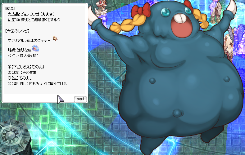 同じレシピを2回やったらクトルさんとセドラさんが出たけどスクショ忘れた