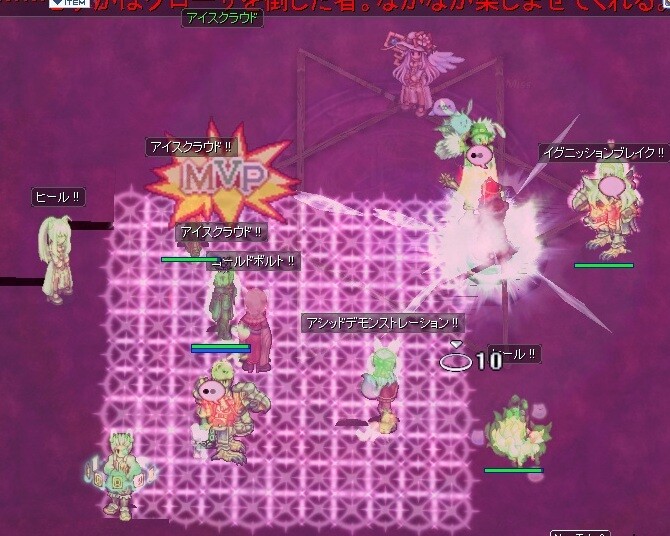だいぶ遅刻して魔女戦から魔ドルで参戦 寄ってきた雑魚処理でJF撒いてたけど、MVP取れるくらい位にはアイスクラウドは火力出てた感じ