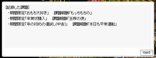 ログイン画面が新年のやつだから、称号もうもらえるんか!?と思ってアマツに行ったけどダメでした(´・ω・`)まぁそうよね正月からだよね…(´・ω・`)