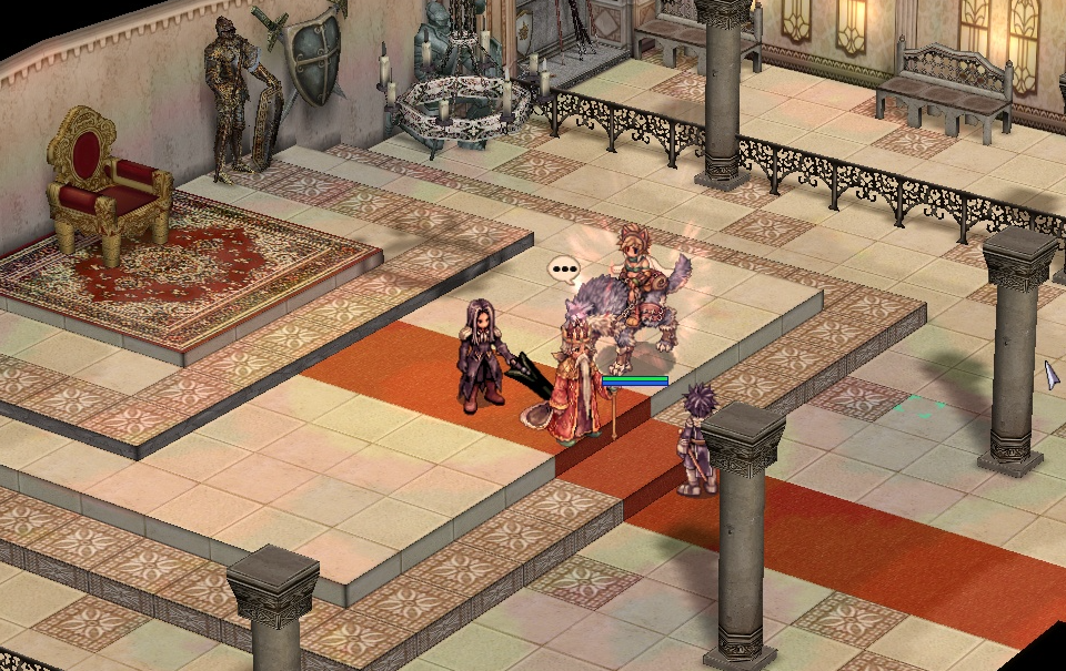 赤絨毯がこの位置までしかないのは、国王と謁見の間を取ることで暗殺者の強襲を失敗させる思惑もあるんですねぇ(ROカス嘘知識)