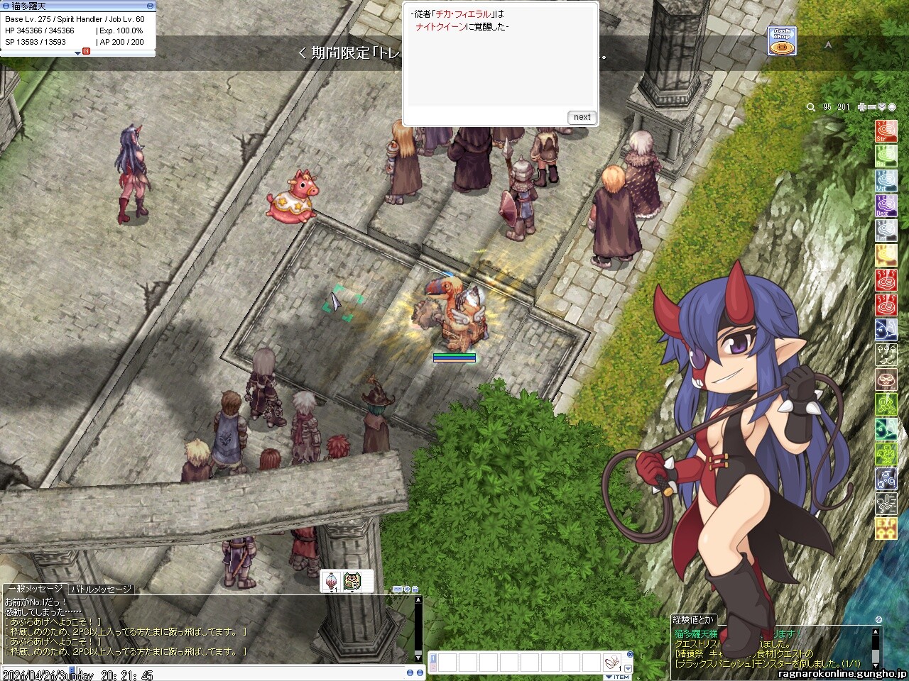 転職は剣士系→ナイトクイーン、手前の職業も影響あるかは不明