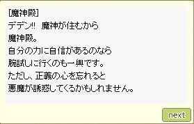 魔神殿選択時に「正義の心を忘れると~」と書かれていたので、「正義感 0」でもしやと思ったらモロクに会えました。