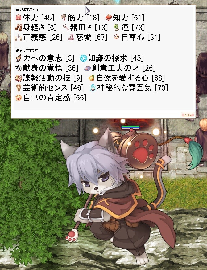 ②の方はドルイド系統になるかと予想してたけど違ってた。猫と逆の自然を愛する心、神秘的な雰囲気の方にしたらなりそうなきもするなぁ。
