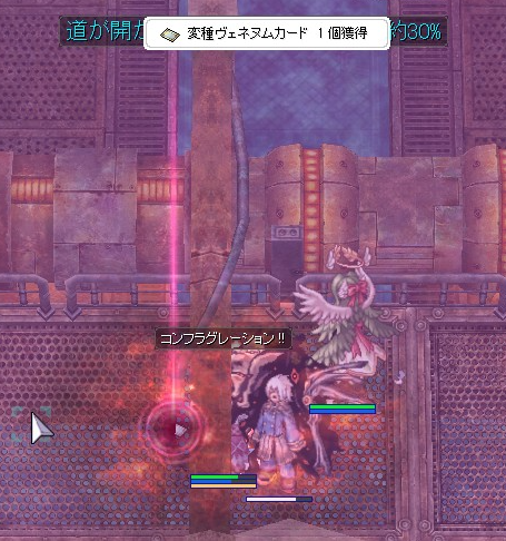 このSSすごいカードを拾った瞬間のSSなんだけど床にカードが落ちている状態と、拾ったアイテムのお知らせの両方が表示されている!