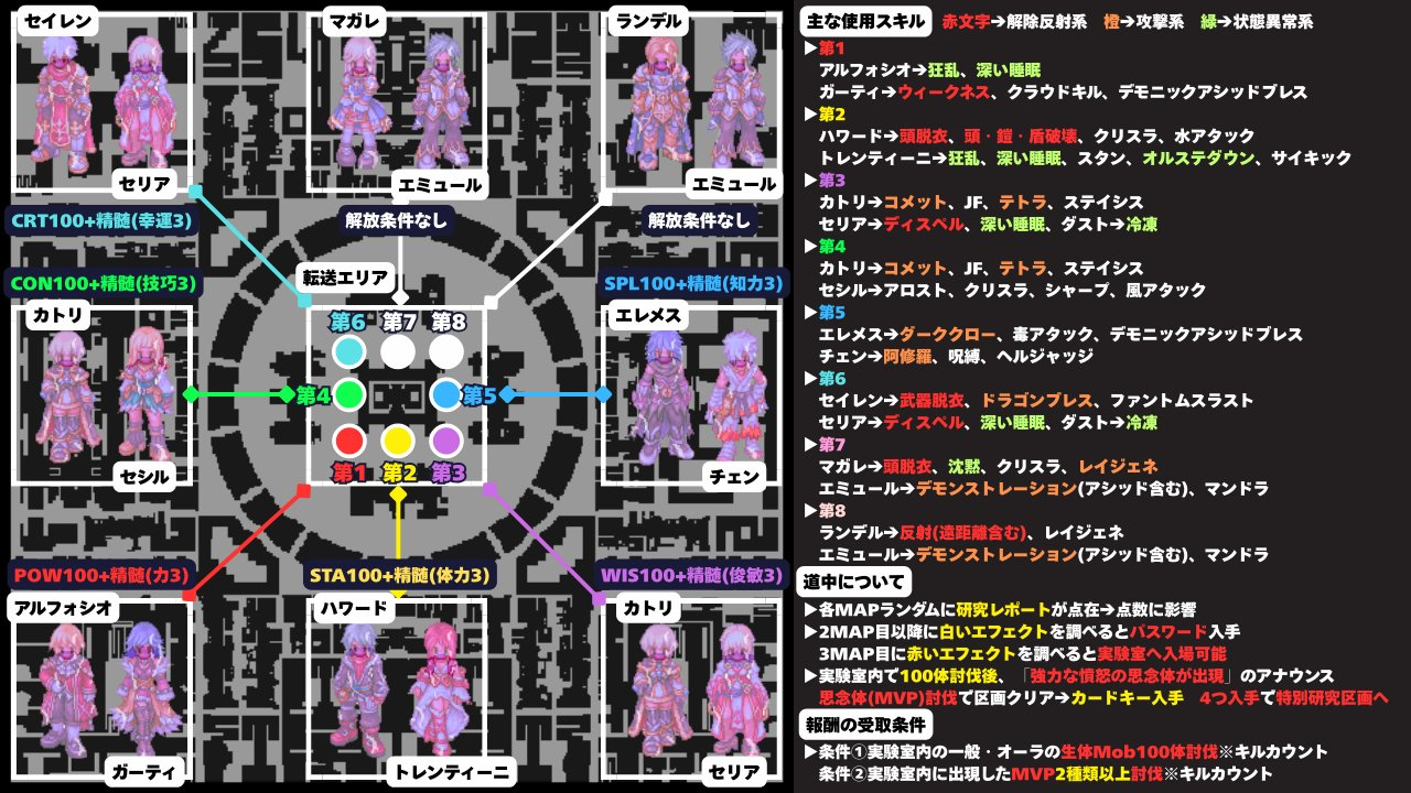 ●生体禁書 各区画について実地で確認した分と頂いた情報を合わせての内容です主要スキルについては個人的にキツそうなものを一部抜粋してるので、体感は異なるかもしれません修正などあれば本投稿に加筆する形としますよろしければご利用下さい😆情報提供頂いた皆様ありがとうございます🙇♂️