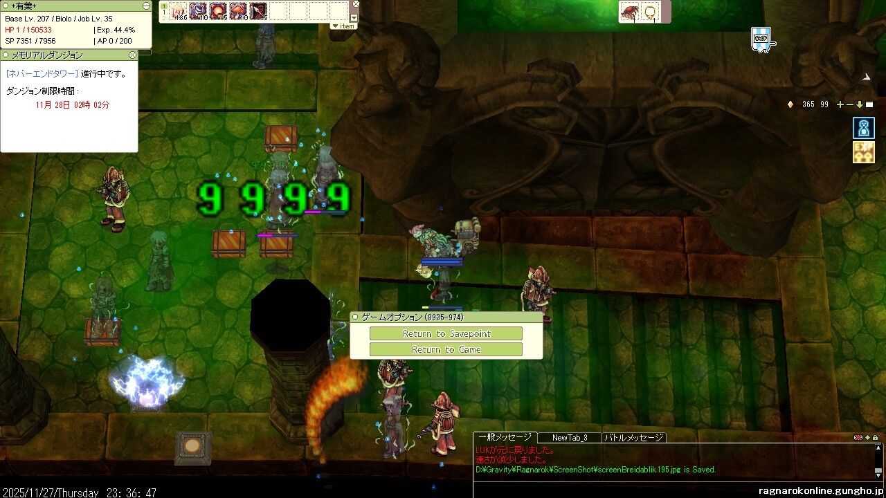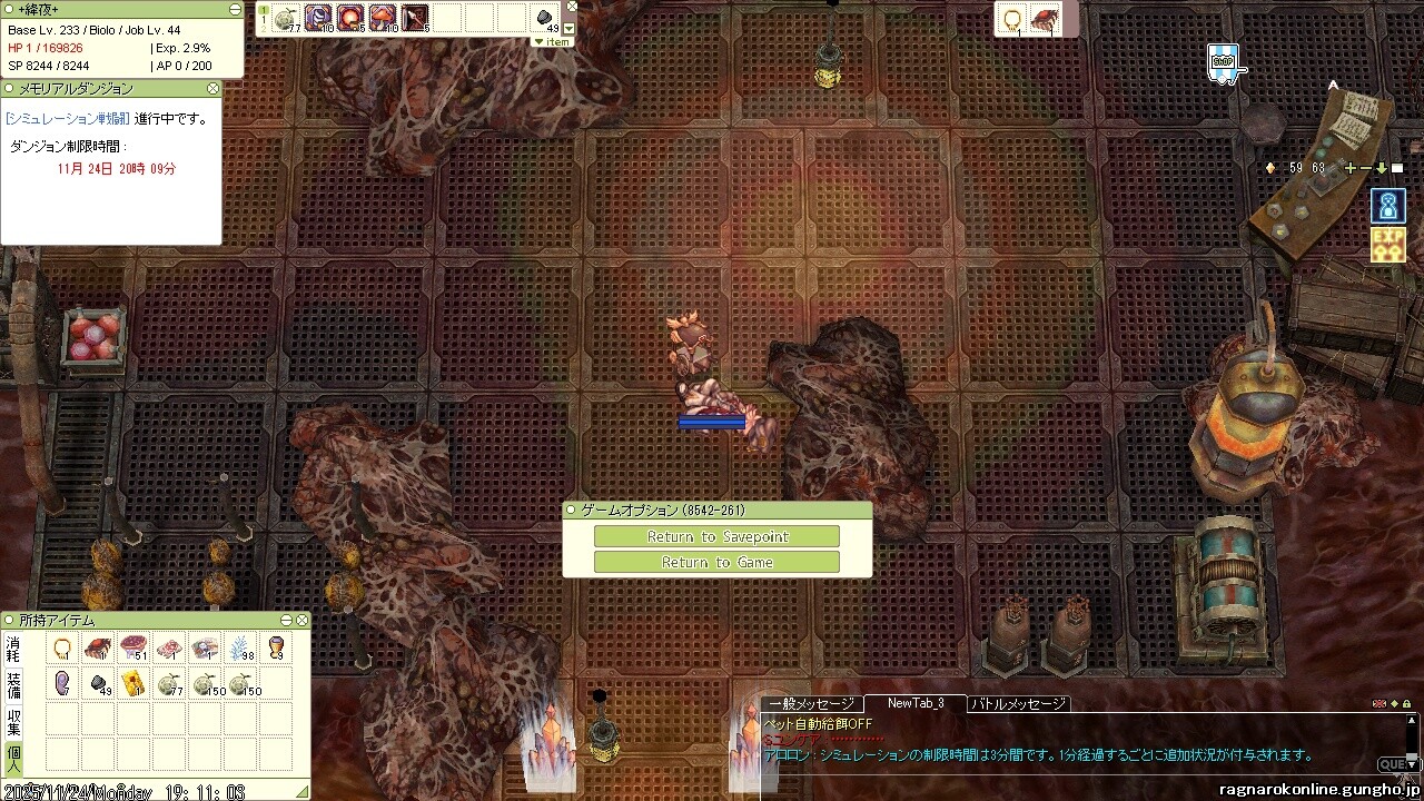 倉庫開いてパッケ装備以外何か…何か…ってとりあえず引っ張り出した大変ひどい装備。とりあえずピラ3F卒業してどこ行こうかなー。廃屋でも行くかぁ。