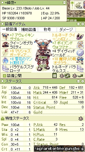 なんか胴+8にしてたwwwなんでwwww物理反射はね…メインバイオロでも取れてないからね…。