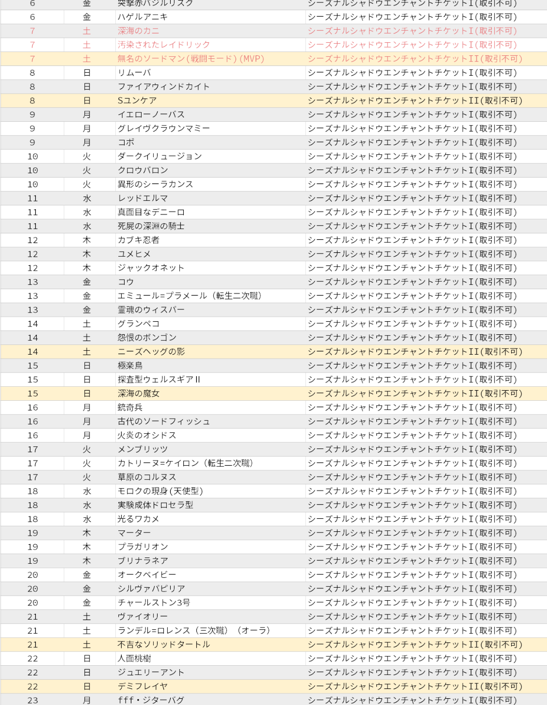ただ、羊羹はRGGを討伐したあと30分丁度でヒューンって音を鳴らすのに対し、感覚的にこの2年前後くらい前(← 感覚値なので正確な数字じゃないかも)から、RGGは30分ジャスト湧きと35分湧きの2パターンが混在しています。公式に書かれた数字(30分)が間違ってるのか、サーバーのリポップのパラメーターが運営の意図通りになってないのかとか分かりませんが、結果的に実際の動きはそうなってます。