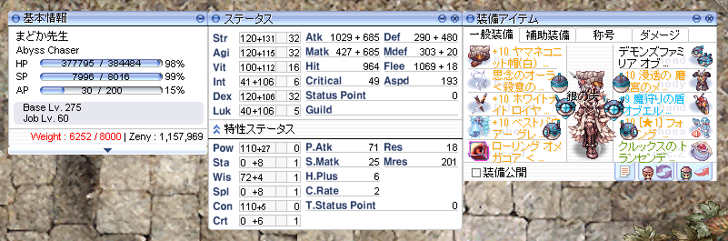 2021年秋に10数年ぶりにフェンリル鯖から復帰して、Radgrid鯖で近接物理短剣型のシャドウチェイサー/アビスチェイサーを主にやってます。