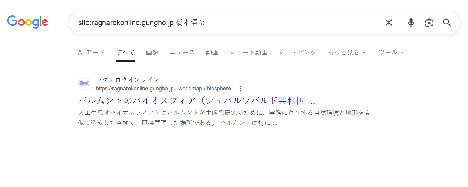 Googleでガンホーのサイト内を橋本環奈で検索するとシレっと1件だけ返してくるのすごない?