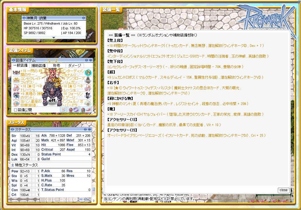 4次構成の大枠が4年越しの完成。あとは星座アクセ厳選したり、カードを一部換装したり、エンチャを一部変更したり、そういう規模の変更でとりあえず生きていける
