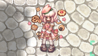 パステルピンクのカラーコーデにお菓子のアクセントが目をひくね