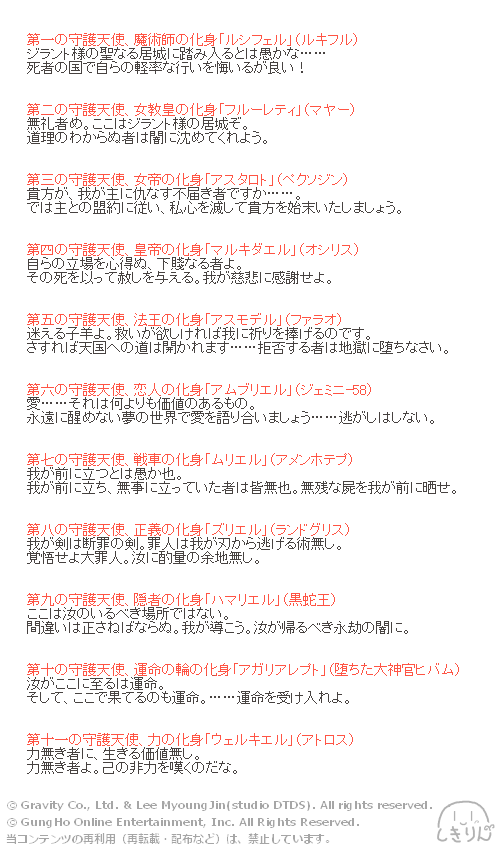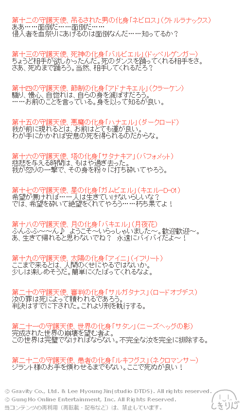 おかげさまで、守護天使登場セリフ一覧出来ました!(別投稿)