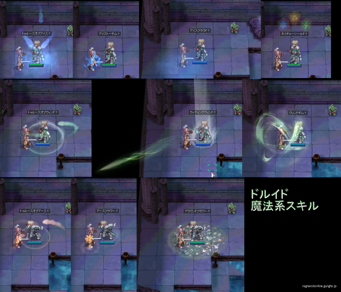 装備無しで撮影したので使用感はまだ語れない。見た目の話ならYExマトで活躍出来るかもしれないアイスクラウドは地味と言うかシンプルと言うか。風属性系は如何にも風って感じがして珍しい(雷の外見が多いイメージ)。地属性系は何処でもお花が咲くぞ☆やったあ☆(私は嬉しい)