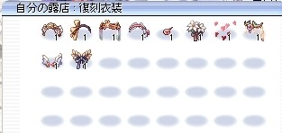 衣装をだいたい整理し終えてほっと一息。だいたい2300ちょい。 不用品も結構あるので今後せっせと売らないと……と考えている人は多そうなので露店が楽しみですね。それにしても上段多いですね。昔は中段があまりなくて貴重だった気がする。