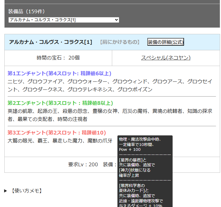 エンチャント逆引きツールに本日実装分の装備を追加しました。
