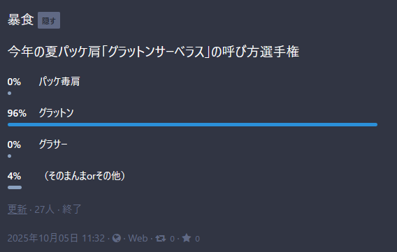 今年の夏パッケ肩「グラットンサーベラス」の呼び方選手権