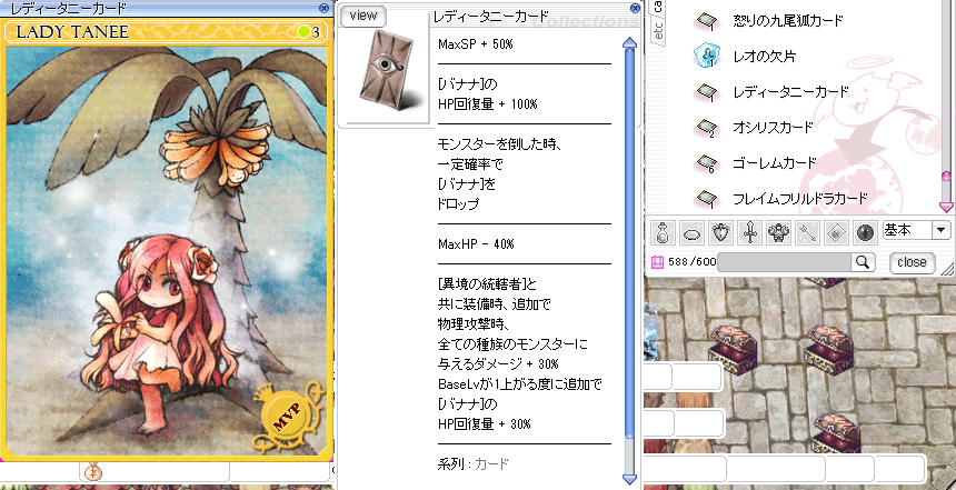 封印されたレディータニーカードでLv260時にバナナの回復量2650%なので18.5×2650=49025回復するようです。