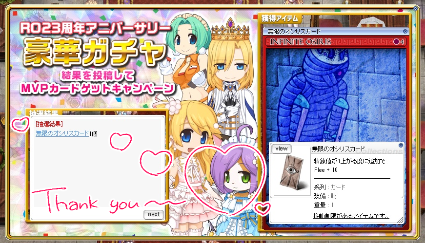1年間遊んでletter for youがいちばん好きだったので、ハッピーマリッジ担当のカプレーゼにゃんに豪華ガチャを引いてもらったのでした