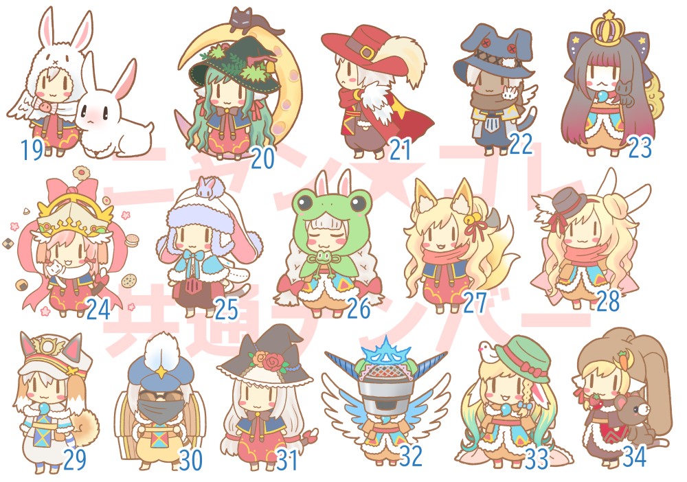 ちまキャラリストから1もしくは3キャラ選んで頂いてTシャツにしちゃうやつです。