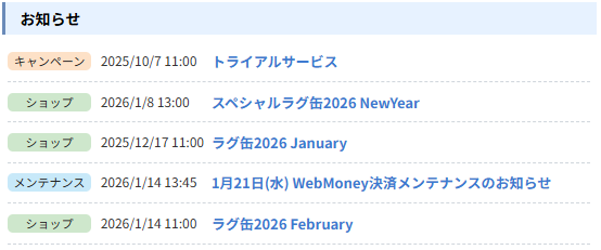 260チケ等のリセットは来週メンテ時!