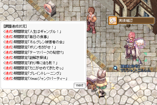 実績達成と衣装の受け取りはニルレムではなく各アトラクションのNPCへ話しかけたタイミングになります。
